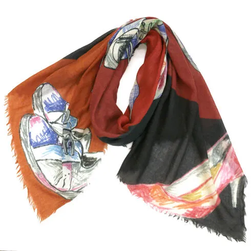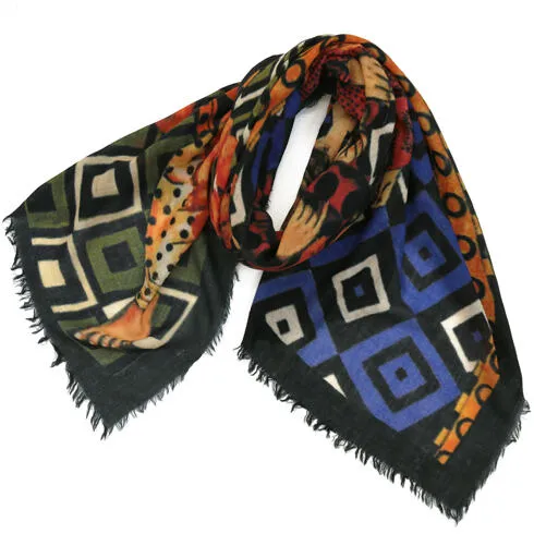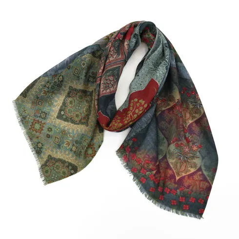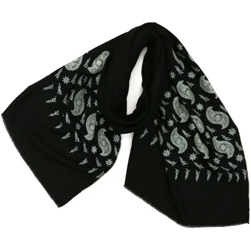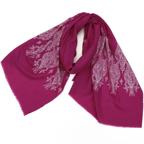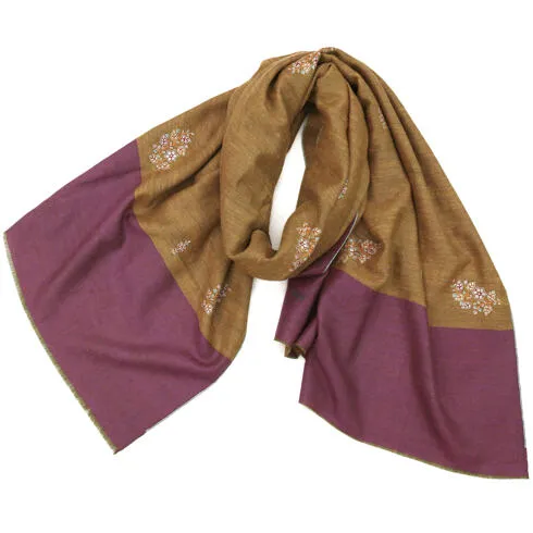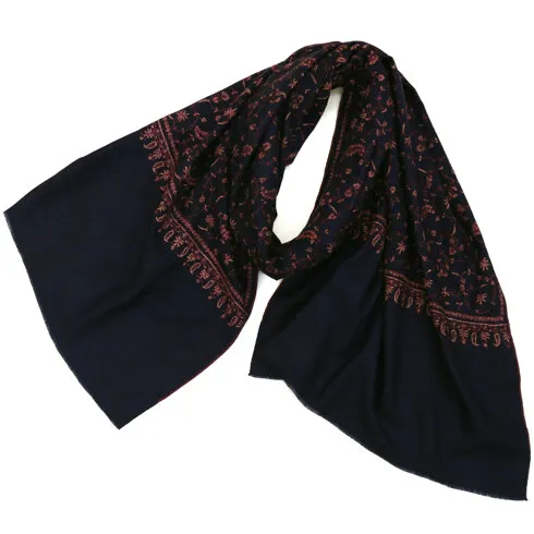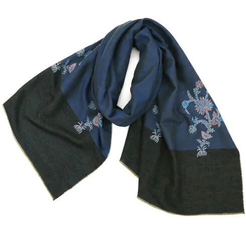 カシミヤストール:手織り/手刺繍/リバーシブルデザイン