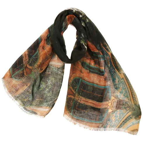コットンシルクスカーフ/プリントデザイン