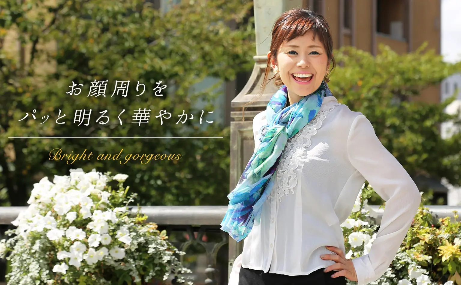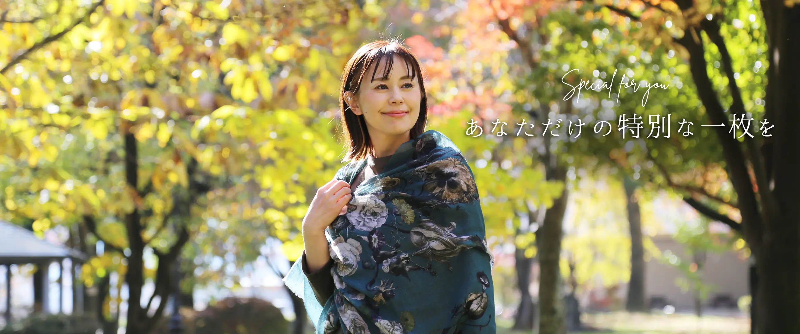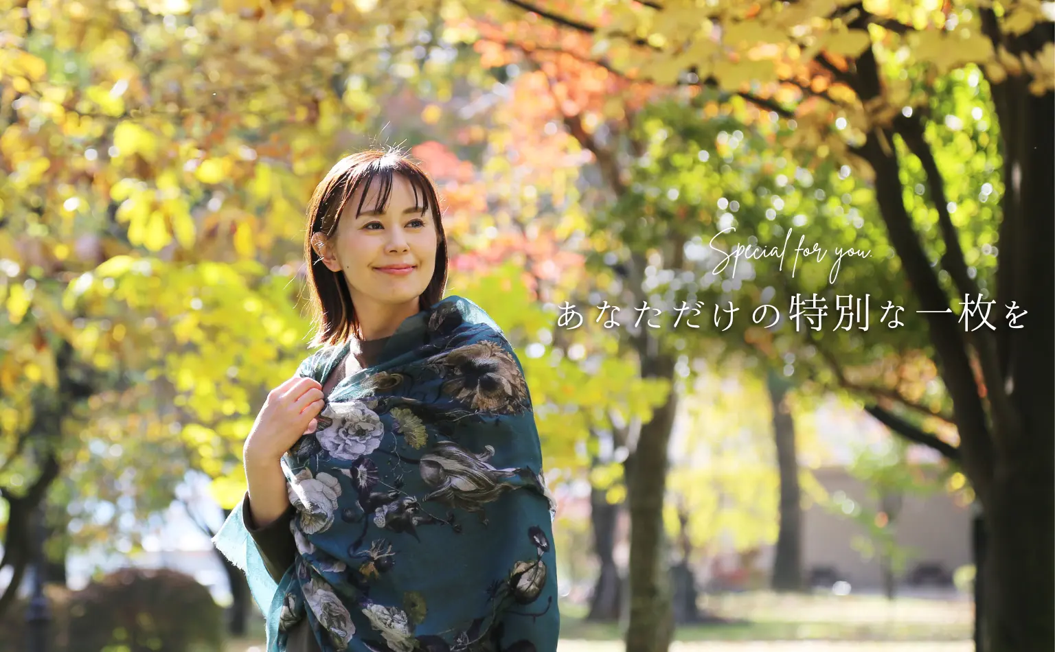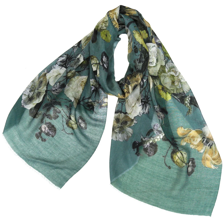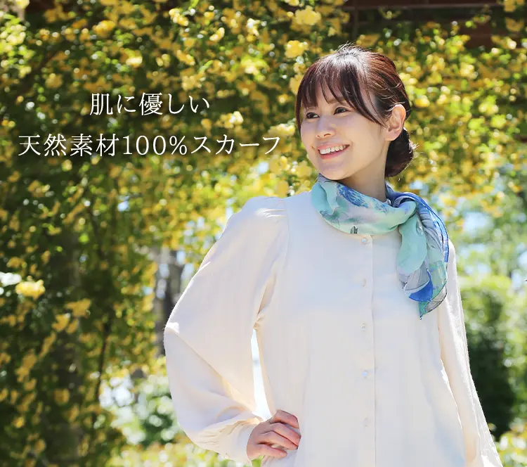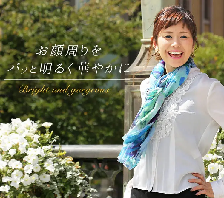 陰影の美しい花柄を気負わずに巻く、新世代のエレガンス。装うだけでコーディネートがきりっと引き締まります!