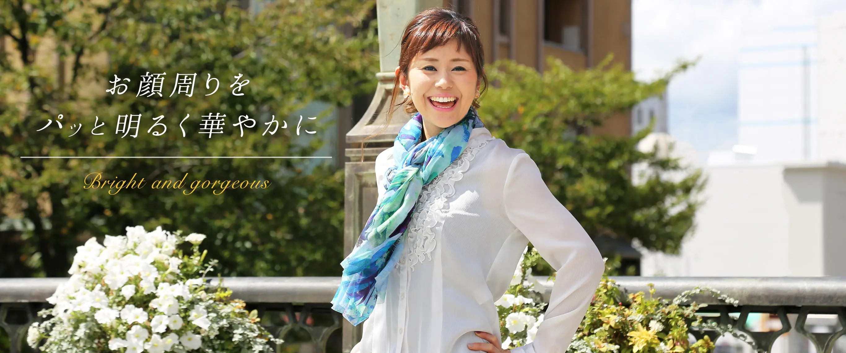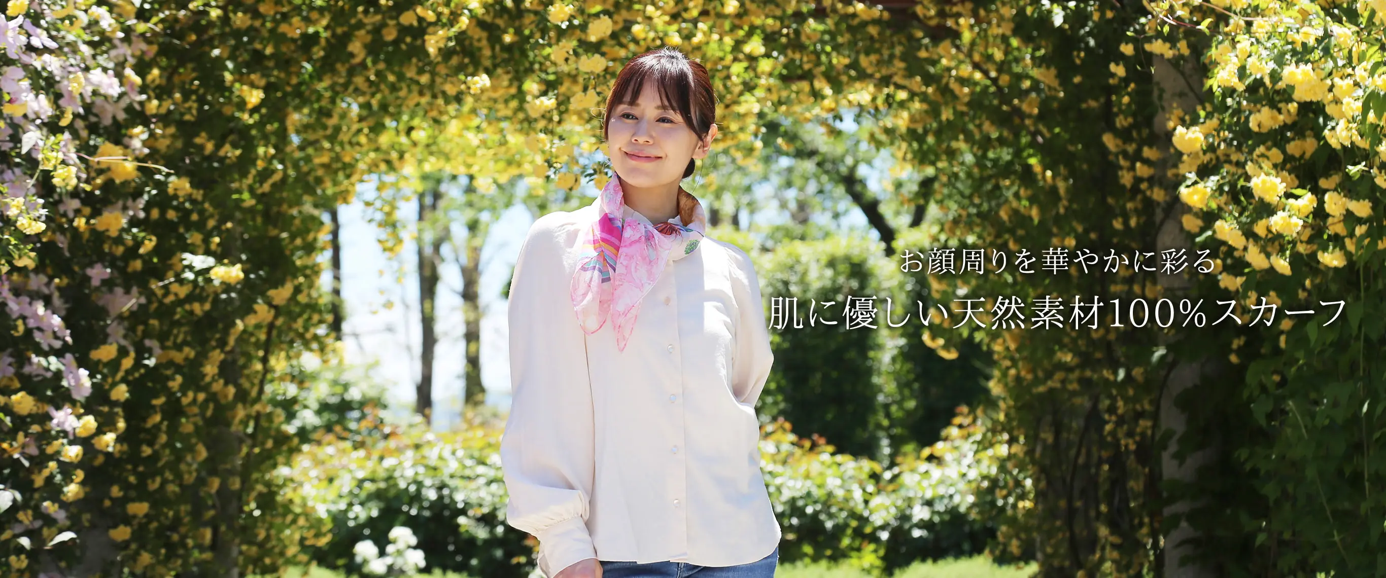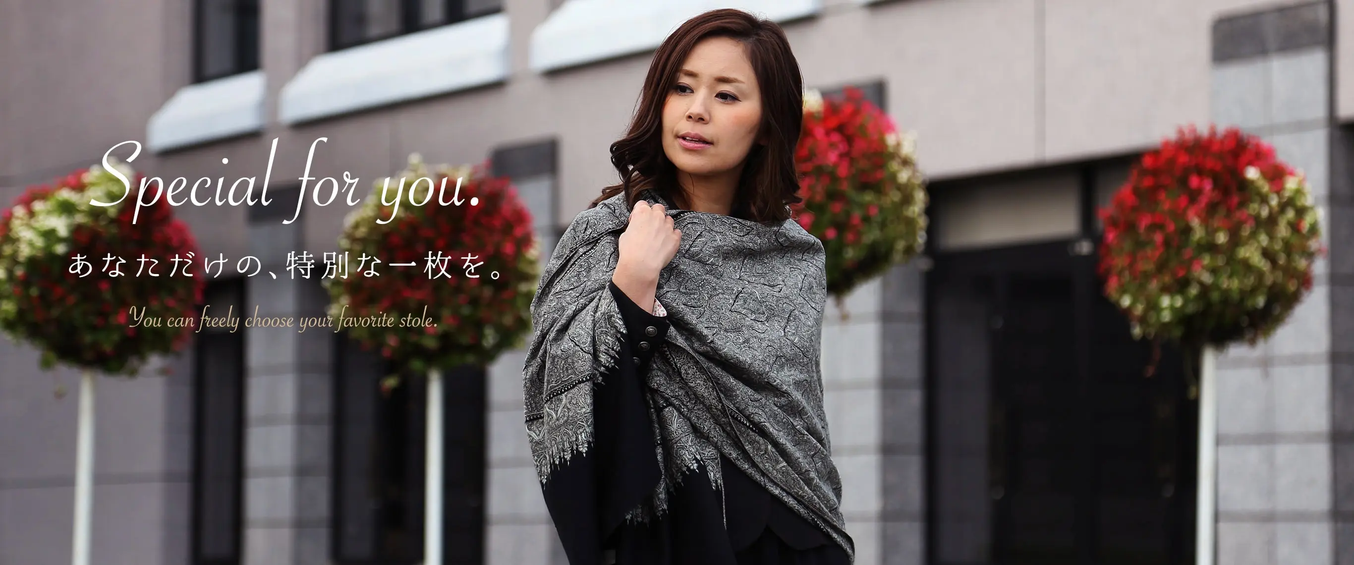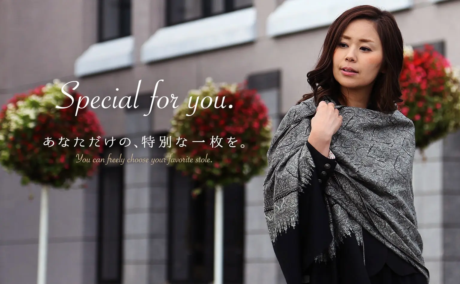 陰影の美しい花柄を気負わずに巻く、新世代のエレガンス。装うだけでコーディネートがきりっと引き締まります!