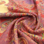 スタンダードな大判サイズで、首に巻くことはもちろん、室内でのひざ掛けにも、肩から羽織る使い方もできます。特に羽織りは、パッと華やかにエレガントな雰囲気に変わります。上半身を覆えるので、着ている服を気にせず合わせることができます。忙しい朝もコーディネートを気にする必要はありません。