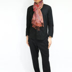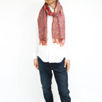 スタンダードな大判サイズで、首に巻くことはもちろん、室内でのひざ掛けにも、肩から羽織る使い方もできます。特に羽織りは、パッと華やかにエレガントな雰囲気に変わります。上半身を覆えるので、着ている服を気にせず合わせることができます。忙しい朝もコーディネートを気にする必要はありません。