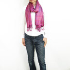 スタンダートな大判サイズで巻いても羽織っても、どちらも使いやすいタイプです。特に羽織は全体の印象がパッと華やかに、エレガントな雰囲気に変化します。