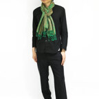 スタンダートな大判サイズで巻いても羽織っても、どちらも使いやすいタイプです。特に羽織は全体の印象がパッと華やかに、エレガントな雰囲気に変化します。