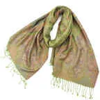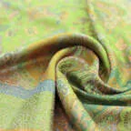 ダイナミックなデザインのジャカード織りストール。シルクの上品な光沢感も相まってアクセント効果が高くなっています。