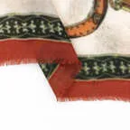 柄が個性的なぶん、色数を絞った絶妙な引き算で、着こなしやすいモダンな一枚に仕上げたストール。肌触りも優しく、とても快適に身につけることができます!