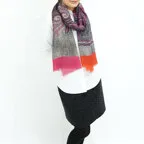 生地感よりカジュアルな普段使いにも、少しフォーマルなシーンでも使いやすいタイプです。スタイルや場所を問わず合わせることができる優れたストールです。