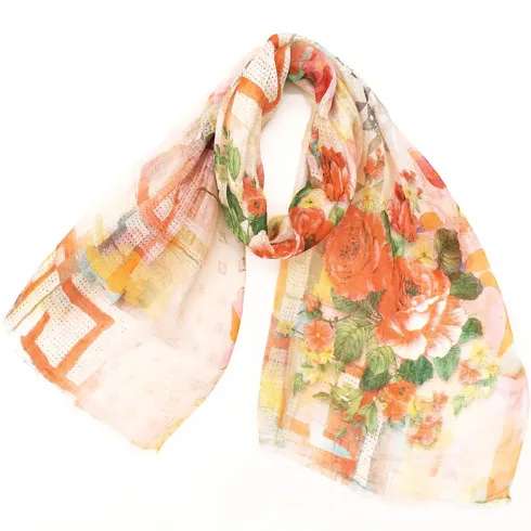 スタンダードな大判サイズで、首に巻くことはもちろん、室内でのひざ掛けにも、肩から羽織る使い方もできます。特に羽織りは、パッと華やかにエレガントな雰囲気に変わります。上半身を覆えるので、着ている服を気にせず合わせることができます。忙しい朝もコーディネートを気にする必要はありません。