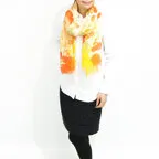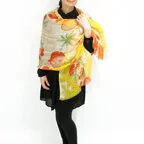 大判サイズのストールで肩から羽織る使い方もできます。春夏の日除けや室内の冷房対策としても使いやすくなっています。