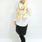 大判サイズのストールで肩から羽織る使い方もできます。春夏の日除けや室内の冷房対策としても使いやすくなっています。