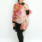 大判サイズのストールで肩から羽織る使い方もできます。春夏の日除けや室内の冷房対策としても使いやすくなっています。