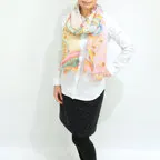 大判サイズのストールで肩から羽織る使い方もできます。春夏の日除けや室内の冷房対策としても使いやすくなっています。