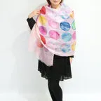 大判サイズのストールで肩から羽織る使い方もできます。春夏の日除けや室内の冷房対策としても使いやすくなっています。