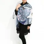スタンダードな大判サイズで巻きでも羽織でもどちらでも使いやすくなっています。特に春夏の日除けや冷房対策としても使いやすく、ファッションのアクセントとしてなら一年中使うことができます。