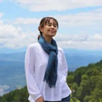 ごく薄手なのに首周りをバランスよく包む程よいボリューム感があり、空気を含んで暖かいので、シーズンを問わず一年を通して使うことができます。