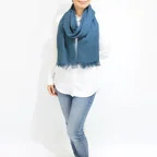 スタンダードな大判サイズで肩から羽織る使い方にも適しています。ゆるっと巻くだけで立体感を作りやすくなっています。春夏の日除けや冷房対策としても使いやすく、ファッションのアクセントとしてなら一年中使うことができます。