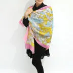 大判サイズのストールで肩から羽織る使い方もできます。春夏の日除けや室内の冷房対策としても使いやすくなっています。