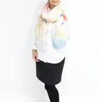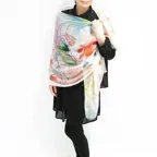 大判サイズのストールで肩から羽織る使い方もできます。春夏の日除けや室内の冷房対策としても使いやすくなっています。