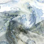 素材感とデザインより春・夏に最適なストールです。もちろんファッションのアクセントとしてなら一年中使うことができます。