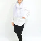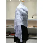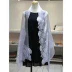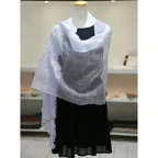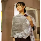 また、バランスの良い大判サイズで肩から羽織る使い方にも適しています。上半身をすっぽりと覆うことができるので纏うだけで印象を大きく変えてくれます。