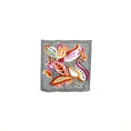 90cm×90cmの正方形サイズで小さくまとります。折りたためばサッとバッグに入れて持ち運べます。外出先でも邪魔になることはありません。また、身につけるだけでなく、手持ちのバッグにキュッと結べるアクセサリーとしても重宝します。