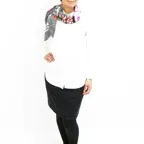 スクエアサイズで、アスコットタイのようにシャツやブラウスの中におさめて使うこともできます。室内でも巻いたままでいられるので使いやすくなっています。