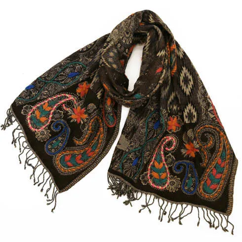 緻密で精巧な刺繍が目を見張る一枚。落ち着いたベースカラーで合わせやすく、手刺繍が程よいアクセントになる非常に使いやすいストールです。