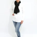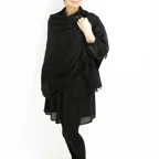 一巻きで決まる、新ベーシックストール。深みのあるブラックカラーでファッションによらず合わせやすくなっています。