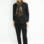 大判の長方形で、端面はナチュラルな断ち切り加工を施しています。どんな巻き方をしても表情豊かでお洒落な印象になります。また、折りたたんで使えばスッキリとシャープなシルエットになります。