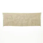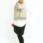 スタンダードな大判サイズで、首に巻くことはもちろん、室内でのひざ掛けにも、肩から羽織る使い方もできます。特に羽織りは、パッと華やかにエレガントな雰囲気に変わります。上半身を覆えるので、着ている服を気にせず合わせることができます。忙しい朝もコーディネートを気にする必要はありません。