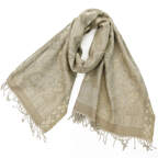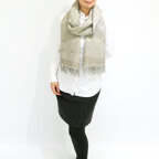 スタンダードな大判サイズで、首に巻くことはもちろん、室内でのひざ掛けにも、肩から羽織る使い方もできます。特に羽織りは、パッと華やかにエレガントな雰囲気に変わります。上半身を覆えるので、着ている服を気にせず合わせることができます。忙しい朝もコーディネートを気にする必要はありません。