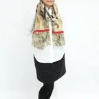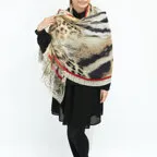 生地感よりカジュアルな普段使いにも、少しフォーマルなシーンでも使いやすいタイプです。スタイルや場所を問わず合わせることができる優れたストールです。