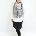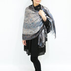 スタンダートな大判サイズで巻いても羽織っても、どちらも使いやすいタイプです。特に羽織は全体の印象がパッと華やかに、エレガントな雰囲気に変化します。
