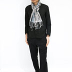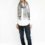 スタンダートな大判サイズで巻いても羽織っても、どちらも使いやすいタイプです。特に羽織は全体の印象がパッと華やかに、エレガントな雰囲気に変化します。