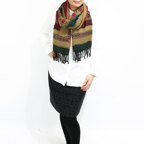 スタンダードな大判サイズで、首に巻くことはもちろん、室内でのひざ掛けにも、肩から羽織る使い方もできます。特に羽織りは、パッと華やかにエレガントな雰囲気に変わります。上半身を覆えるので、着ている服を気にせず合わせることができます。忙しい朝もコーディネートを気にする必要はありません。