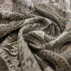 スタンダードな大判サイズで、首に巻くことはもちろん、室内でのひざ掛けにも、肩から羽織る使い方もできます。特に羽織りは、パッと華やかにエレガントな雰囲気に変わります。上半身を覆えるので、着ている服を気にせず合わせることができます。忙しい朝もコーディネートを気にする必要はありません。