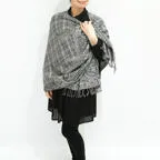 スタンダードな大判サイズで、首に巻くことはもちろん、室内でのひざ掛けにも、肩から羽織る使い方もできます。特に羽織りは、パッと華やかにエレガントな雰囲気に変わります。上半身を覆えるので、着ている服を気にせず合わせることができます。忙しい朝もコーディネートを気にする必要はありません。