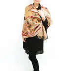 スタンダードな大判サイズで、首に巻くことはもちろん、室内でのひざ掛けにも、肩から羽織る使い方もできます。特に羽織りは、パッと華やかにエレガントな雰囲気に変わります。上半身を覆えるので、着ている服を気にせず合わせることができます。忙しい朝もコーディネートを気にする必要はありません。