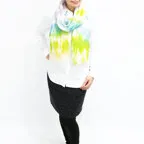 大判サイズのストールで肩から羽織る使い方もできます。春夏の日除けや室内の冷房対策としても使いやすくなっています。