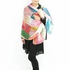 大判サイズのストールで肩から羽織る使い方もできます。春夏の日除けや室内の冷房対策としても使いやすくなっています。