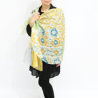 大判サイズのストールで肩から羽織る使い方もできます。春夏の日除けや室内の冷房対策としても使いやすくなっています。