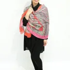 スタンダードな大判サイズで巻きでも羽織でもどちらでも使いやすくなっています。特に春夏の日除けや冷房対策としても使いやすく、ファッションのアクセントとしてなら一年中使うことができます。