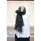 スタンダードな大判サイズと軽やかな質感で、巻きだけでなく羽織でも合わせやすいタイプです。トップスがほのかに透けて見え、上品な印象を与えてくれます。