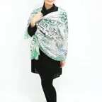 スタンダードな大判サイズで巻きでも羽織でもどちらでも使いやすくなっています。特に春夏の日除けや冷房対策としても使いやすく、ファッションのアクセントとしてなら一年中使うことができます。