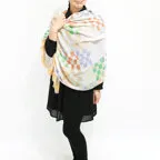 スタンダードな大判サイズで巻きでも羽織でもどちらでも使いやすくなっています。特に春夏の日除けや冷房対策としても使いやすく、ファッションのアクセントとしてなら一年中使うことができます。