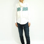 生地の厚みと刺繍の重量感も手伝って、すとんと流れるような落ち感が絶妙です。ゴワゴワせずスッキリとした印象を作り出すことができます。