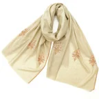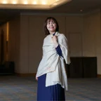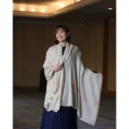 195cm×100cm大判ショールサイズで、巻きでも羽織でもどちらも使いやすいストールです。特に羽織は全面に施された刺繍が美しく輝き、サッとあしらうだけでゴージャスな雰囲気に変化します。横幅が特に長いのでドレスや着物などの羽織物としても重宝します。