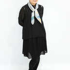 65cm×65cmの小判スカーフで、アスコットタイのようにシャツやブラウスの中におさめて使うこともできます。室内でも巻いたままでいられるので使いやすくなっています。