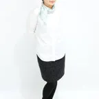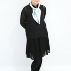 65cm×65cmの小判スカーフで、アスコットタイのようにシャツやブラウスの中におさめて使うこともできます。室内でも巻いたままでいられるので使いやすくなっています。