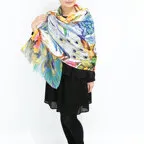 大判サイズのストールで肩から羽織る使い方もできます。春夏の日除けや室内の冷房対策としても使いやすくなっています。